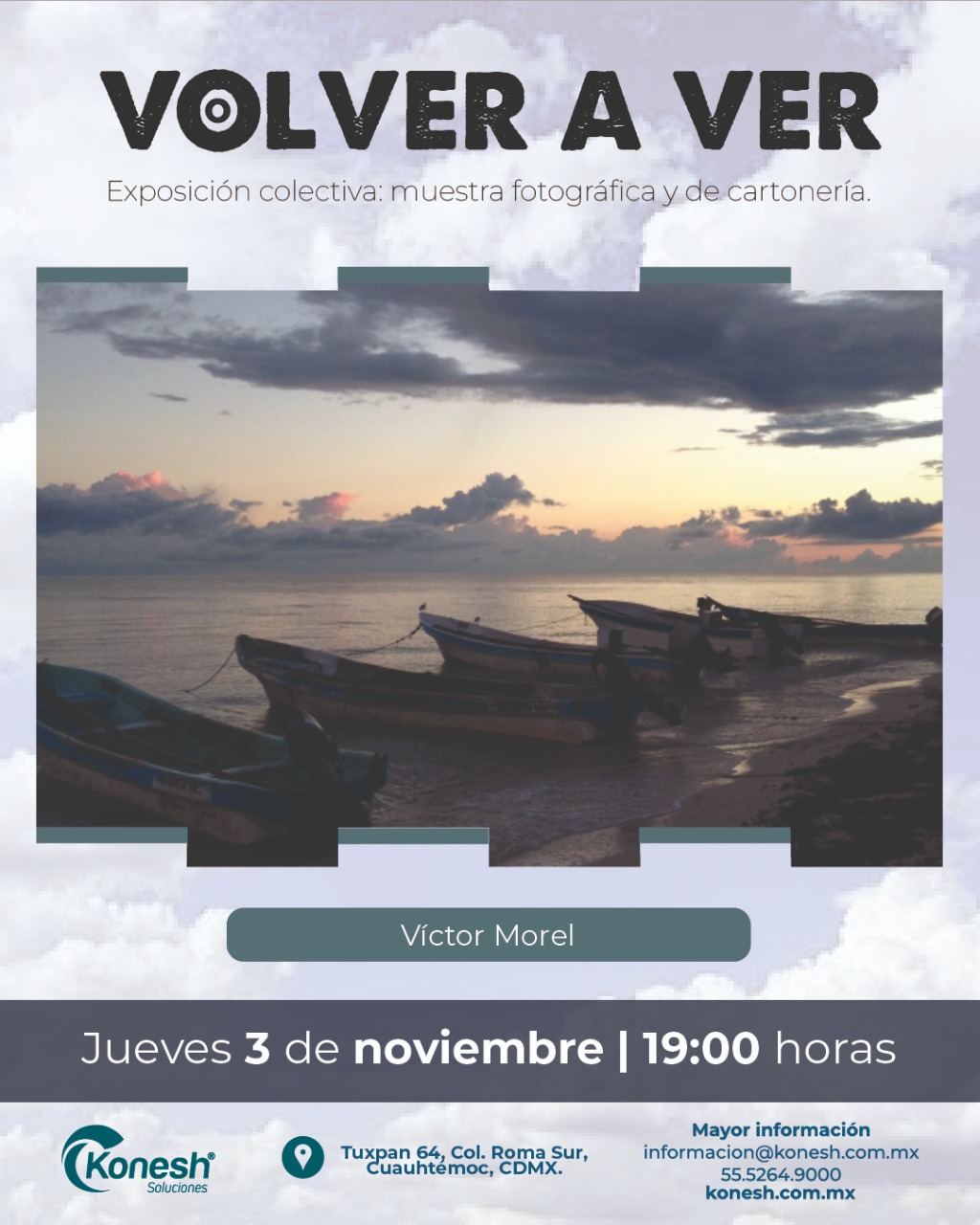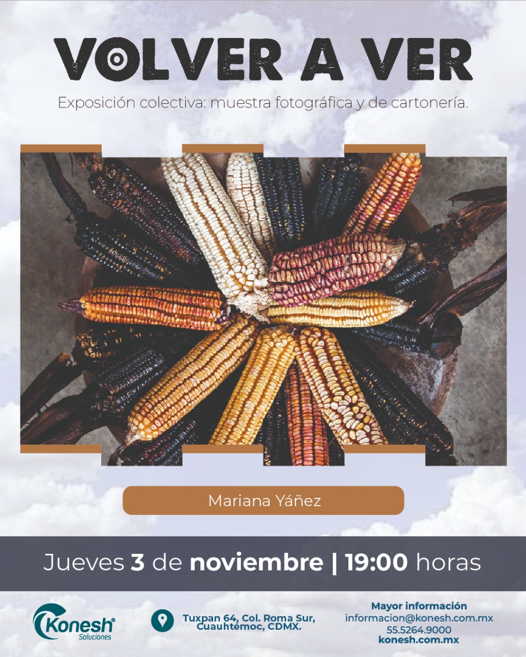La inauguración será el 3 de noviembre en las instalaciones de Konesh Soluciones, ubicadas en Tuxpan 64, Colonia Roma Sur, Alcaldía Cuauhtémoc, a las 19:00 horas.