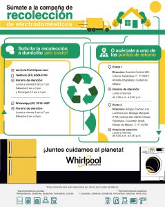 El programa integral de recolección de residuos RAEE de Whirlpool opera con dos mecanismos principales: la recolección puerta a puerta gratis y puntos de retorno fijos en la Ciudad de México.